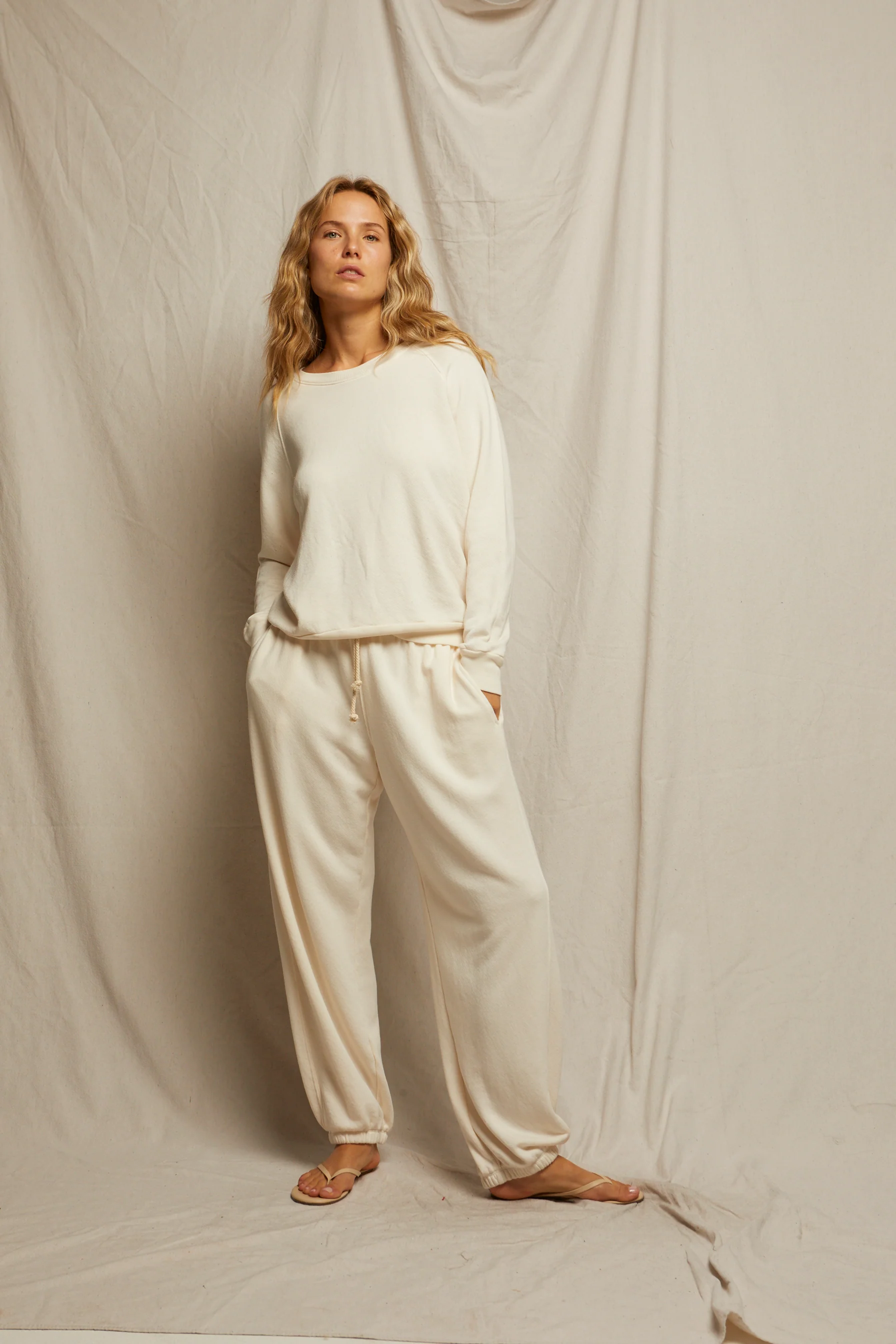 our classic lennon sweatshirt got a summer shape up in beach fleece. boasting raglan seaming and full length sleeves, this version has a touch more ease and slouch. pair it with the drifter beach jogger for the ultimate après beach look.